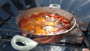 Güneş sobasının farklı bir çalışma olduğundan bahseden Faruk Durukan, “Burada dışarıdan hiçbir yardımcı malzeme gelmiyor. Şu anda görmüş olduğunuz güneş sobaları ile yemeğimizi pişirdik. Merkezleme ile yemeğimizi ısıtıyor, pişiriyoruz. Hiçbir enerji kullanmadan sadece güneş enerjisini kullanarak yemeklerimizi güneş sobasıyla hazırlıyoruz. Doğada bu tip malzemeleri kullanmak çok avantajlı” dedi.